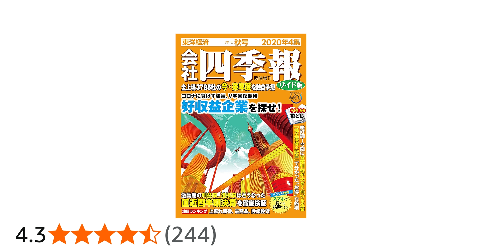 『会社四季報』(通常版)の2倍の文字で読みやすい! コロナに負けず成長、V字回復が見込める企業は? 業界担当記者が独自取材・独自分析で業績変化を先取り。 完全2期予想の会社四季報で自分だけの“成長企業"を探そう! 2020年4集秋号では、3...